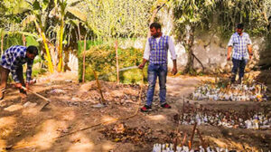 Gautam planted the first peepal tree sapling in the nursery of GGF.